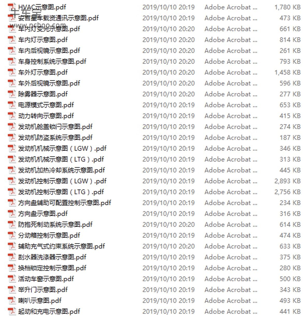 传动系统、 制动系统、 发动机系统、 变速器系统、 安全系统、 悬架系统、 电源和信号分布.pdf 空调系统、 车身修理、 车身系统、 车身金属构件和装饰件、 车顶系统、 转向系统、 音频系统。