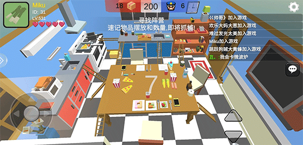 躲猫猫大乱斗版是一款多人在线3D捉迷藏游戏,采用像素风格打造,整体色彩搭配清晰明亮,再加上城堡、赛车场、废旧医院、军事基地等数十种地图,带给玩家别样的视觉体验。游戏中拥有两个阵营,分别是寻找者与躲藏者,躲藏者可以伪装成各种物品,寻找者只需在200秒内找到所有躲藏的玩家就可以获得胜利,玩起来十分的休闲有趣。