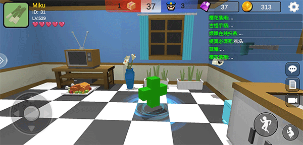 4、而寻找者,可以点击任何自己觉得可疑的地方来寻找躲藏者,并可手持武器抓捕,或使用枪击道具远程抓捕,最终在200秒内找到所有的躲藏者即为胜利。