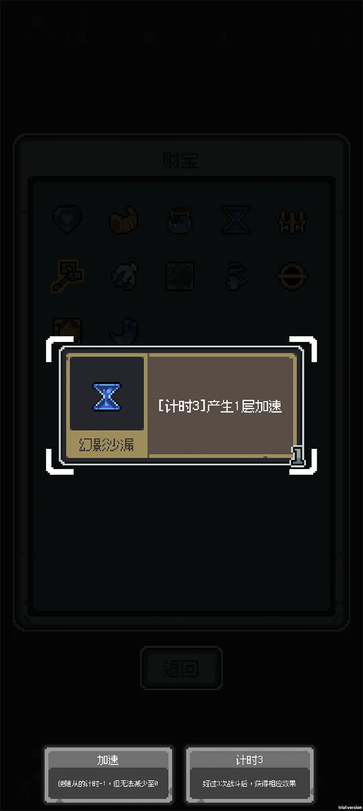 剩下就可以拿一些例如迷你黑洞这类的可以加刷新或者消除次数的神器,但注意要有「计时」词条,要不然融入不进去加速流派里。