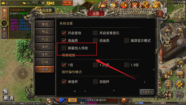 虎符传奇新版本怎么屏蔽他人的特效?