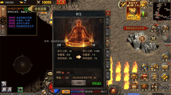 达到指定等级后就可以直接转生了,可以提升玩家的体力上限、伤害加成。