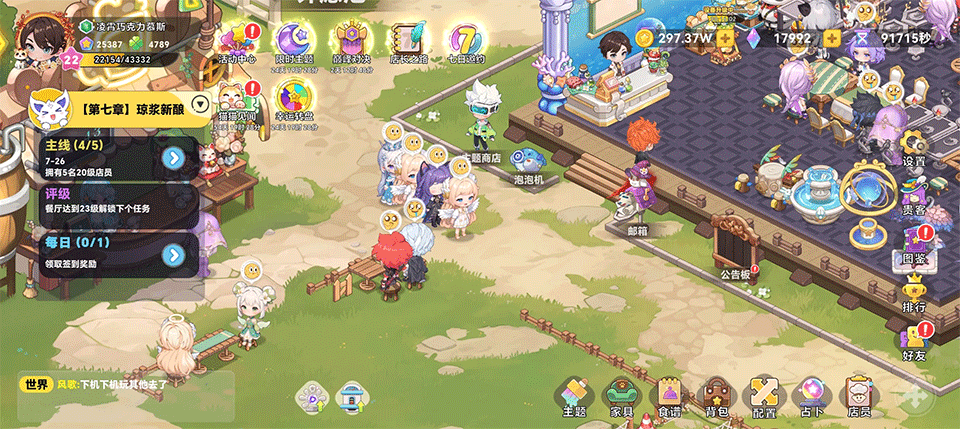 萌系装饰布置:游戏提供千款萌系装饰,玩家可自由搭配,打造全网最吸睛的网红打卡地,吸引更多顾客。