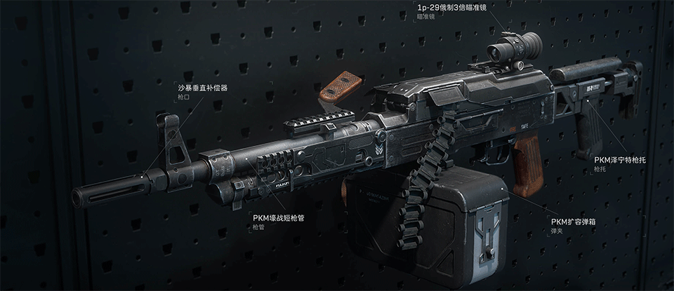 全自动机枪,采用7.62x54mmR全威力弹药,中等射速且具备强大压制力。