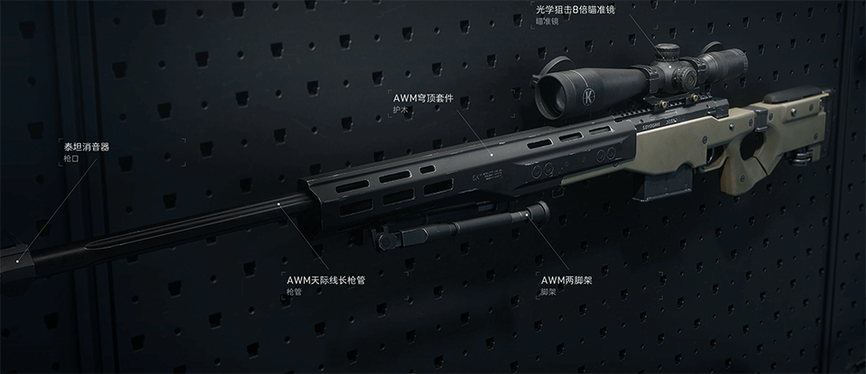 AWM是一款由英国生产的狙击步枪,采用.338 Lapua Magnum弹药,具有极高的精度和射程,是军警中的顶级狙击武器。