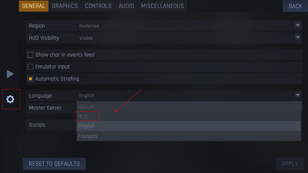 3、最后点击【APPLY】应用,返回游戏就可以看到语言设置成中文了。