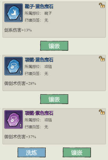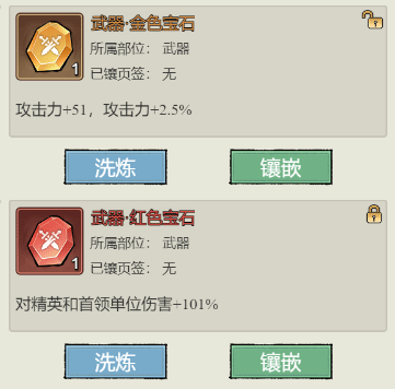 小提示:每个宝石都有所属部位,只能镶嵌到所对应部位的装备上哦。