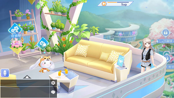 QQ炫舞手游主界面点击角色可以进入阳台,在这里玩家可以打开邮箱,同时还可以查看自己的送花与点赞。后面的花架还可以领取鲜花,赠送给自己喜欢的其他小伙伴,另外点击后面的花架,可以进入到花园种植鲜花。