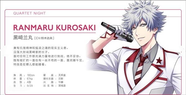 私生活被谜团包围的神秘偶像,偶像工作之外还会作词作曲。外表看不出他的毒舌,其实只是心直口快并无恶意,对于一些小事也抱有疑问并深入研究。