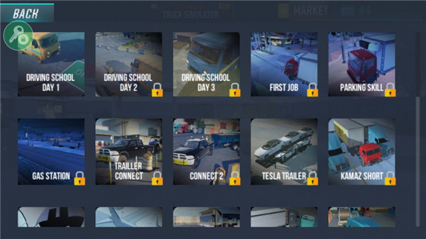 2、多种地图场景,超多卡车和皮肤等着你来解锁,感受不同的驾驶乐趣;
